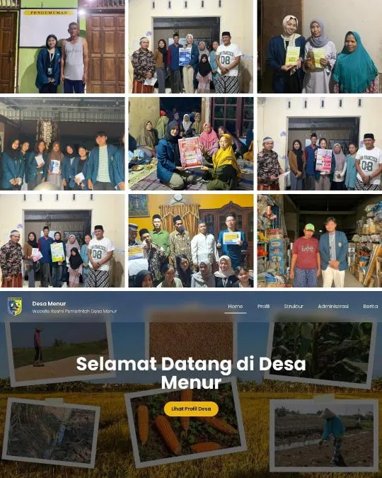 Tak kalah menarik, Diaz, mahasiswa Teknik Listrik Industri, turut terlibat dalam pembuatan website resmi Desa Menur bersama tiga rekannya, yaitu Hany, Maria, dan Almira. Website ini dirancang oleh Shulhan, mahasiswa Teknik Komputer dari kelompok lain yang berfokus di RW 1 Desa Menur. Website ini dirancang sebagai platform publikasi resmi yang menampilkan profil desa, administrasi kependudukan, struktur organisasi pemerintah desa, serta portal berita yang juga ditulis oleh mahasiswa dari kelompok RW 1 Desa Menur. Hadirnya website ini, Desa Menur kini dapat menjangkau publik lebih luas, membuka peluang kerja sama, serta mendokumentasikan proses pembangunan secara transparan.