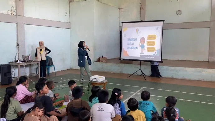 Kegiatan dimulai dengan sesi edukasi mengenai konsep wirausaha, seperti memahami apa itu wirausaha, manfaat berwirausaha, dan contoh wirausaha anak-anak. Penyampaian materi ini dilakukan secara interaktif agar lebih mudah dipahami oleh anak-anak.