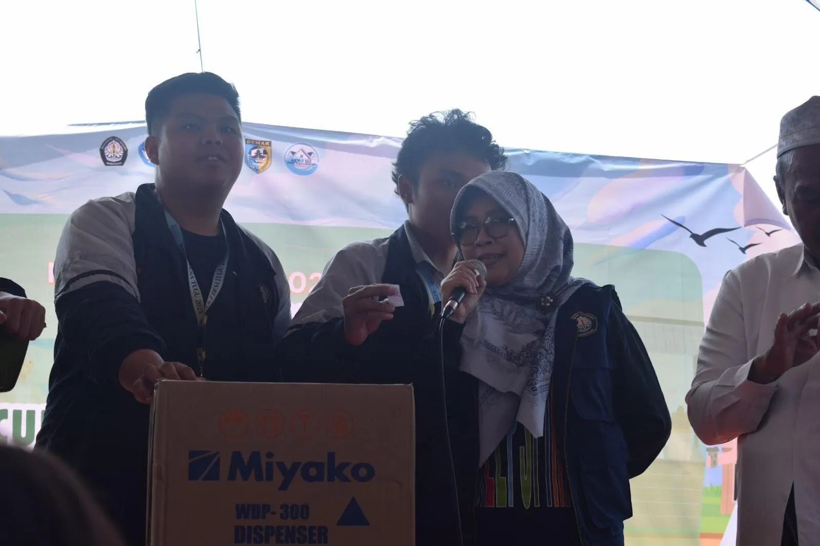 Prof. Dr. dr. Sri Achadi Nugraheni, M.Kes., selaku Dosen Pembimbing Lapangan (DPL) KKN-T Tim 122 Universitas Diponegoro memberikan sambutan dalam acara Pesta Rakyat dan peluncuran Pos Satelit Kesehatan (PosLit) di Pondok Pesantren At-Tamriiyah, Desa Tugu, Minggu (20/7/2025).