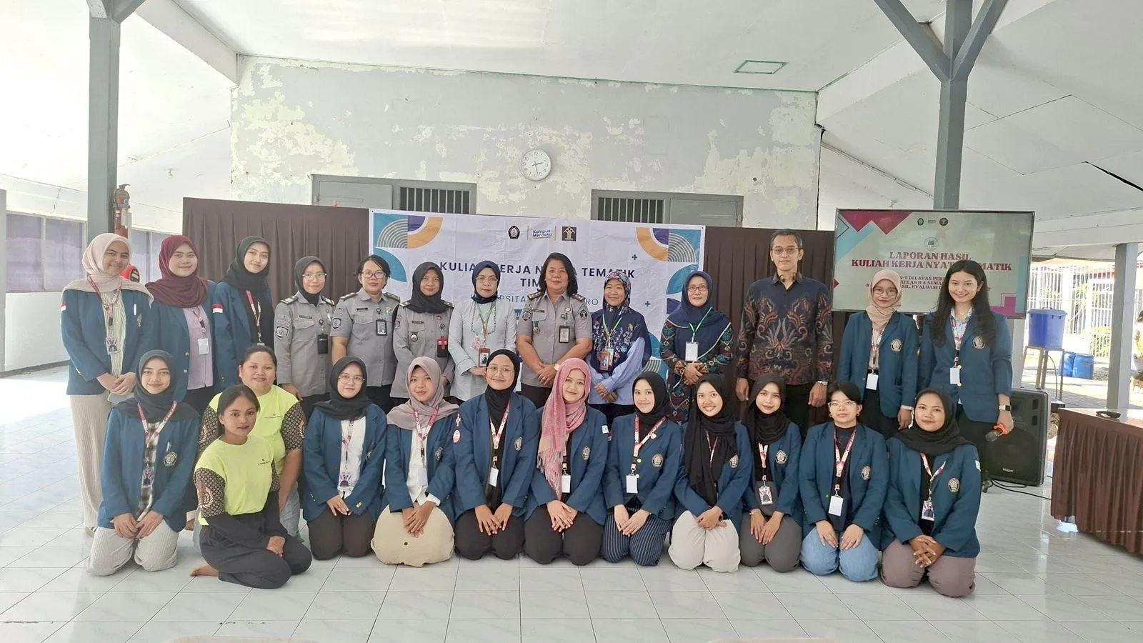 Tim 111 Kelompok 1 KKN T Universitas Diponegoro bersama Dosen Pembimbing Lapangan, Pihak Lapas, dan Warga Binaan Pada Acara Penarikan KKN di Lapas Perempuan (30/6/2025).