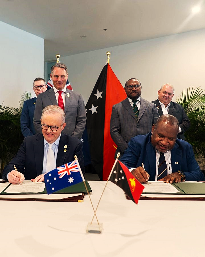 Pada tahun 2025, PNG menyetujui Perjanjian Pertahanan Pukpuk dengan Australia yang merupakan aliansi baru pertama Australia dalam 70 tahun. Perjanjian ini memperkuat kerja sama pertahanan dengan fokus pada peningkatan kapasitas Pasukan Pertahanan PNG melalui pelatihan dan teknologi. Tujuan utama kerja sama dalam Perjanjian Pukpuk antara PNG-Australia adalah memperkuat hubungan historis kedua negara melalui kemitraan pertahanan yang erat dan saling menguntungkan. Perjanjian ini bertujuan menjaga stabilitas dan keamanan kawasan Pasifik, khususnya di tengah meningkatnya pengaruh geopolitik Tiongkok di wilayah tersebut.
