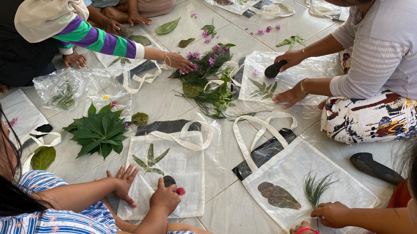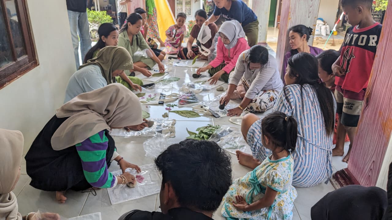 Kegiatan ini bertujuan untuk memperkenalkan teknik ecoprint, yaitu metode menghias totebag canvas dengan memanfaatkan pigmen, bentuk, dan warna alami dari daun maupun bunga. Selain ramah lingkungan, ecoprint juga memiliki nilai seni yang tinggi dan berpotensi menjadi peluang usaha kreatif bagi masyarakat setempat.