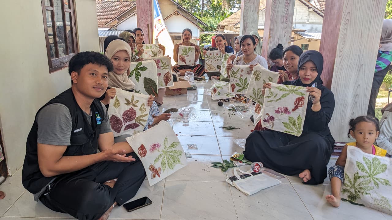 Kegiatan ini bertujuan untuk memperkenalkan teknik ecoprint, yaitu metode menghias totebag canvas dengan memanfaatkan pigmen, bentuk, dan warna alami dari daun maupun bunga. Selain ramah lingkungan, ecoprint juga memiliki nilai seni yang tinggi dan berpotensi menjadi peluang usaha kreatif bagi masyarakat setempat.