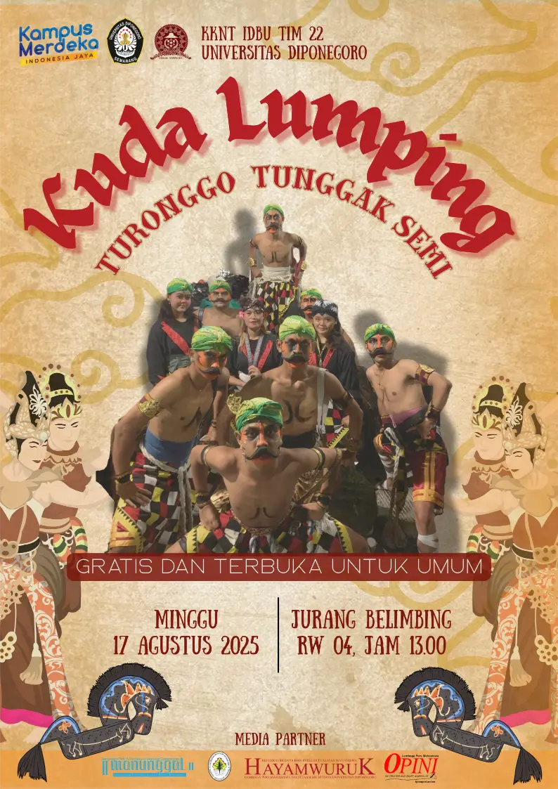 Sebagai puncak dari upaya pelestarian yang beriringan dengan semangat kewirausahaan ini, masyarakat luas diundang untuk menyaksikan langsung pertunjukan mereka. KKN IDBU 22 UNDIP akan menggelar pementasan spesial dalam rangka perayaan kemerdekaan pada Minggu, 17 Agustus 2025, mulai pukul 13.00 WIB di Kampung Seni dan Budaya Jurang Blimbing.