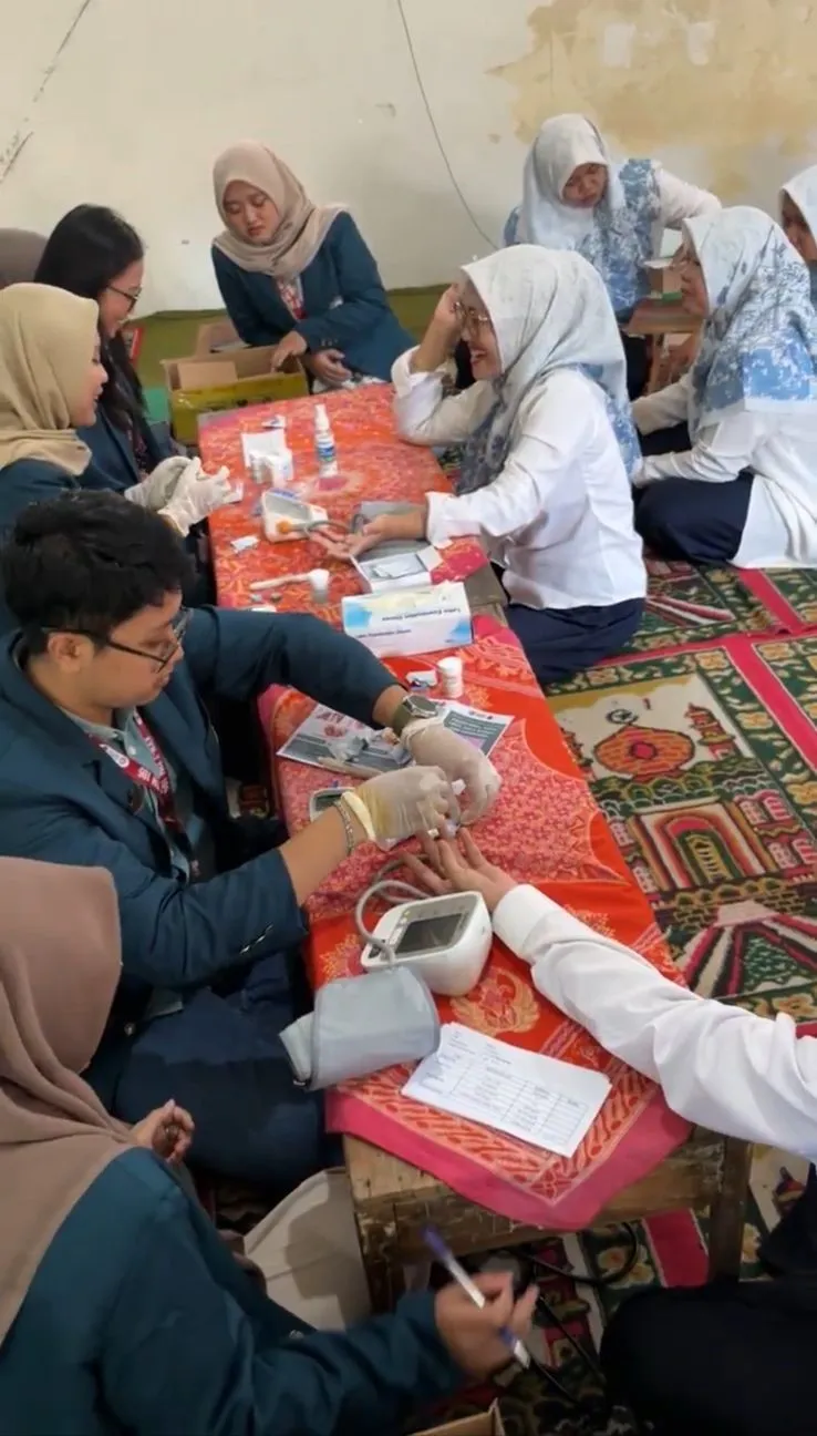 NASIONALISME.NET, SEMARANG — Mahasiswa Universitas Diponegoro (Undip) yang tergabung dalam Tim KKN-T 105 Kelompok 1 melakukan serangkaian kegiatan pengabdian masyarakat di Kelurahan Plamongansari, Kota Semarang. Salah satu program unggulan dilaksanakan oleh Bergas Putra Aji, mahasiswa Kedokteran, Fakultas Kedokteran, yang fokus memberikan edukasi serta melakukan pemeriksaan kepada guru-guru MTs Infarul Ghoy, khususnya terkait gula darah. asam urat, kolesterol, serta tekanan darah